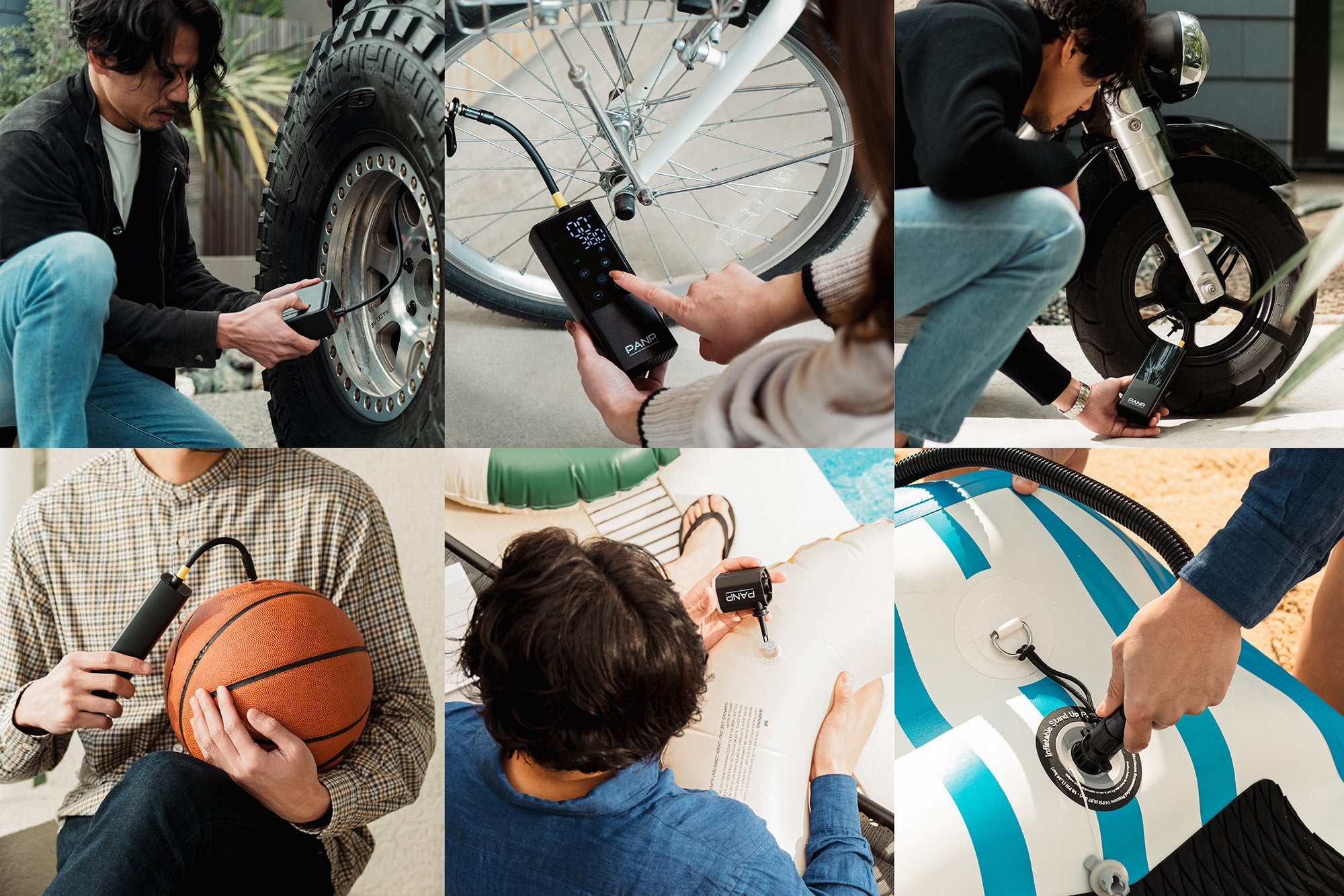 PANPは、ボタンを押すだけで様々な物に自動で空気を入れることができる電動の空気入れです。